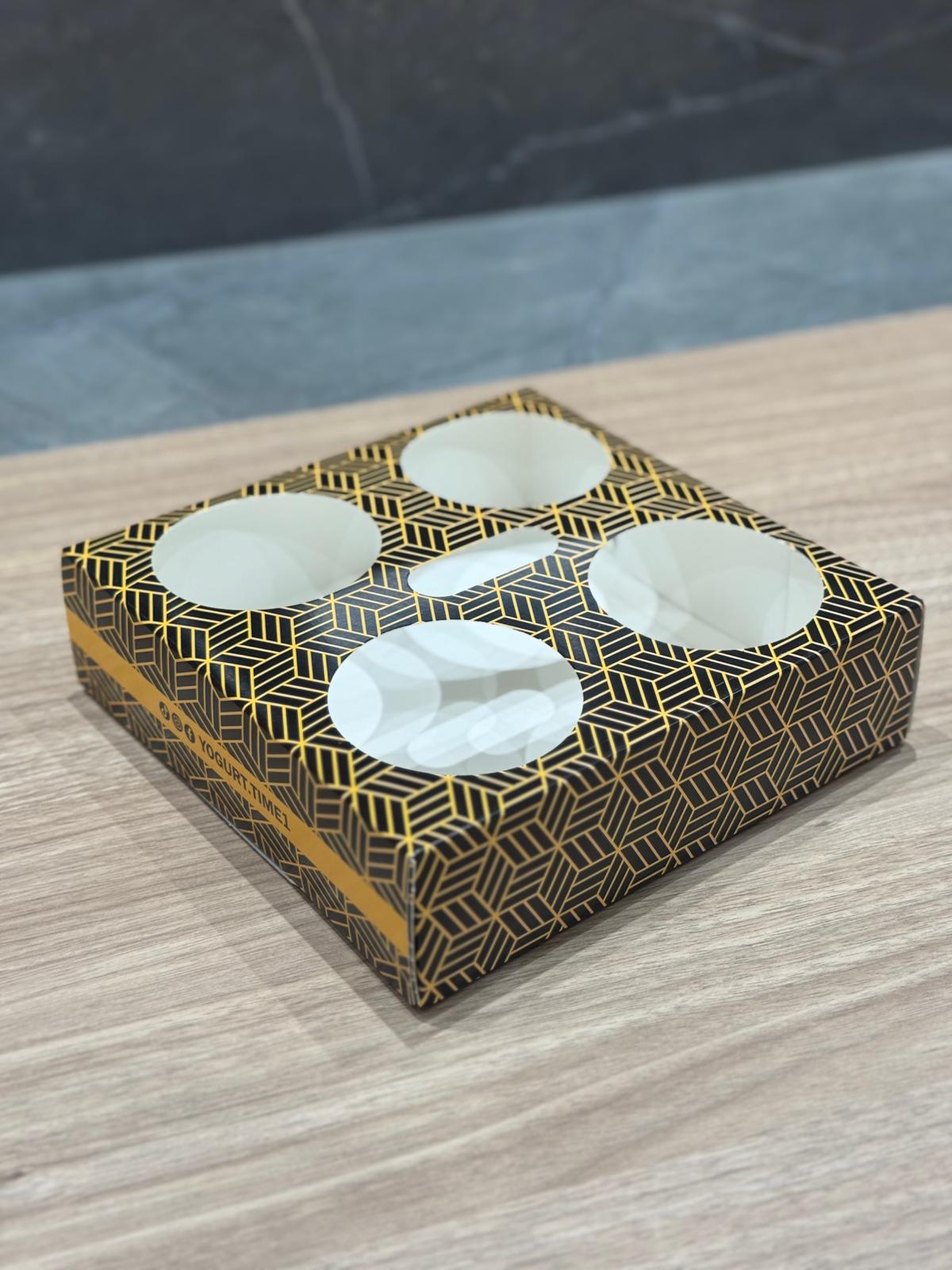 حمالات كاسات علبة متينة، مصممة لتحمل المشروبات الساخنة والباردة، تتسع لأربع أكواب، مع تقنية طباعة أوفسيت عالية الجودة، تجمع بين القوة والأناقة.
