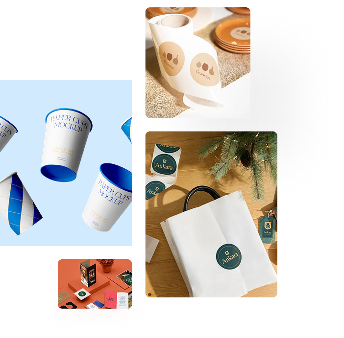 • نطبعها على أكواب، علب، أكياس، دفاتر، وكل إشي ممكن يخطر عبالك